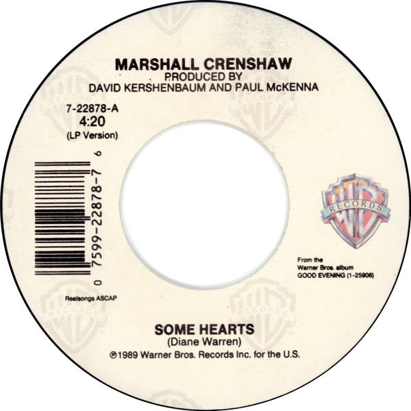 Yes, Marshall Crenshaw’s “Some Hearts” is that song—the one Carrie Underwood took to the bank on her debut album, written by Diane Warren, known for writing nine number one and thirty-three top ten hits (so far) for the likes of Celine Dion, Leanna Rimes, Toni Braxton and Aerosmith (“I Don’t Want to Miss a Thing”). But Crenshaw cut “Hearts” first. Interesting story.